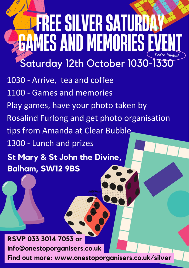 As last year, we are hosting an event on Saturday 12 October at St Mary and St John the Divine, Balham, SW12 9BS, with board games and lunch. It’s free to join in and there will be a chance to find out how to organise your photos with www.clearbubble.co.uk and get your photo taken with www.rosalindfurlong.com To find out more and to book, click here.