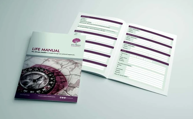 Life Manual from https://www.grey-matters-consultancy.com/life-manual/ another, smaller, workbook in which to record your details.